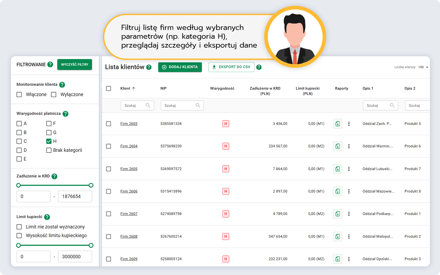- monitoringu nawet 5 000 kontrahentów.