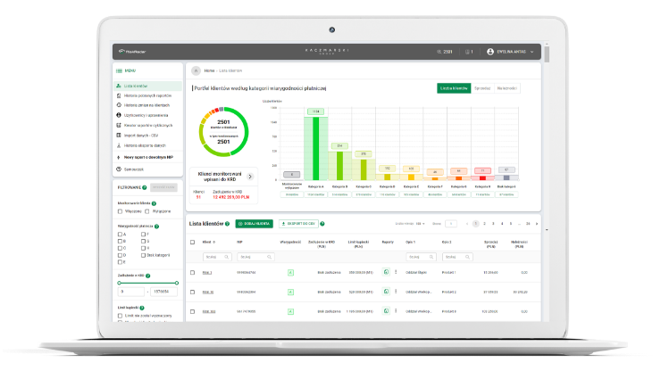 Widzisz cały portfel swoich klientów, podzielony według kategorii wiarygodności płatniczej.